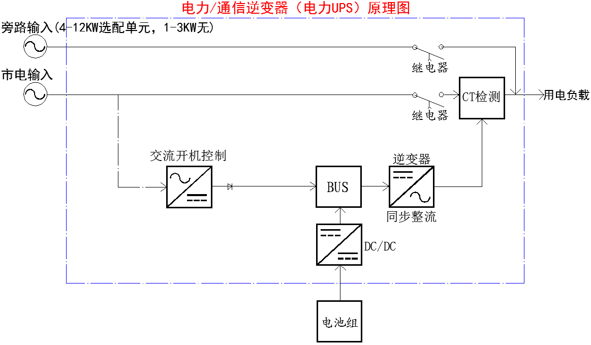 配有旁路输入的,当市电输入和逆变均故障时,电源将自动切换至旁路供电;